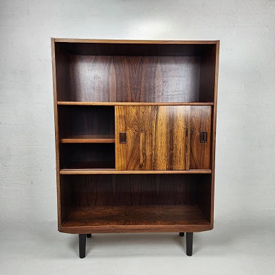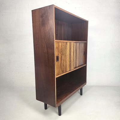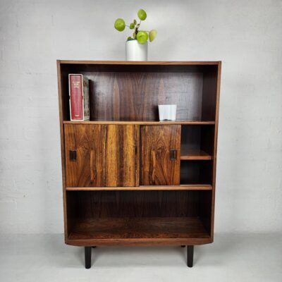 Danish bookshelf made of teak with two sliding doors.